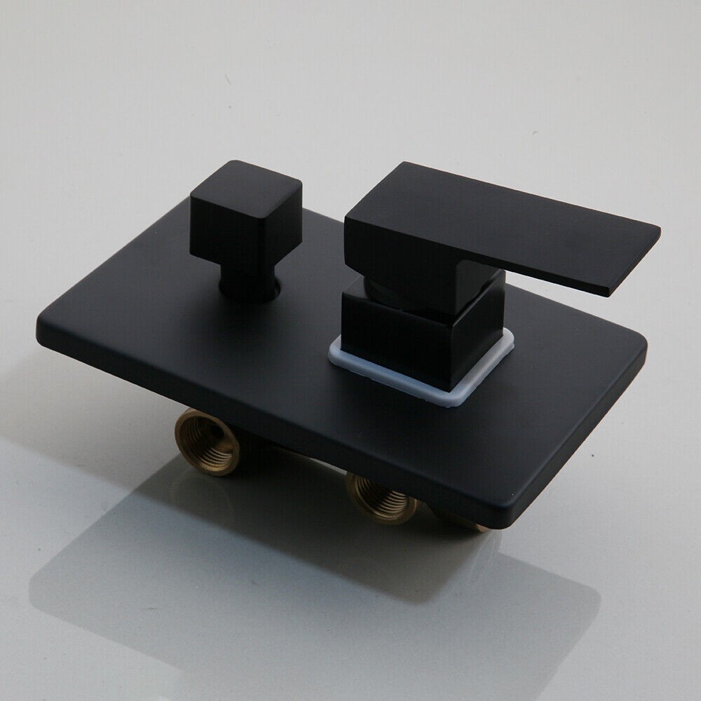 12" Black Bathroom Shower Faucet Set Square Shower Head Tub Mixer Wall Mount Tap