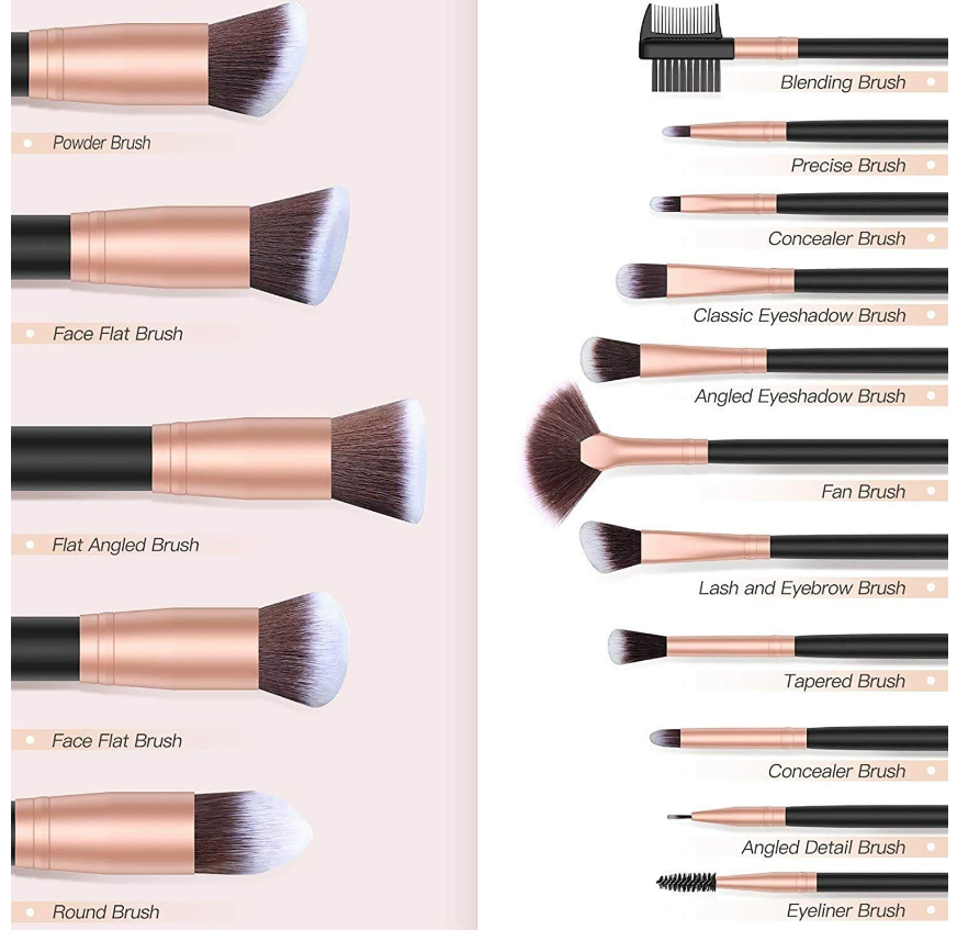 • ESSENTIAL MAKEUP BRUSH SET: Features 5PCs big kabuki makeup brushes and 11PCs precise make up brushes. This brushes kit includes everything you need for a natural look face and eye makeup application
