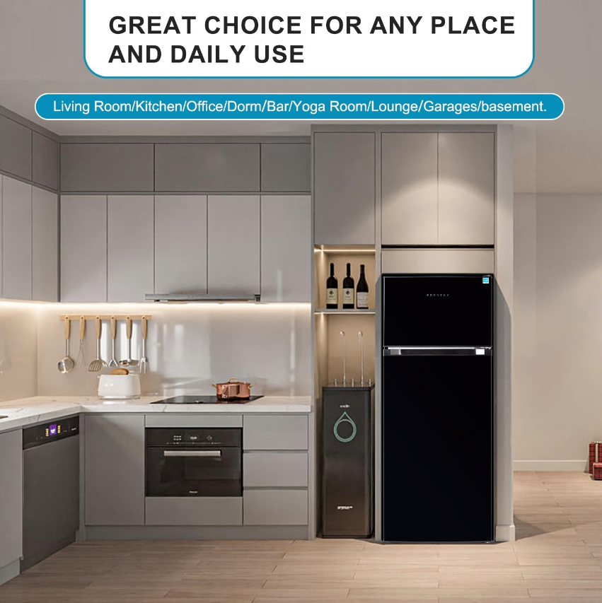 Whisper-quiet Operation: Our 2 door fridge has engineered a whisper-quiet compressor that is virtually undetectable when it works on and off. Therefore, this fridge with freezer is perfect for dormitory, office, bedroom, lounge, bar, garage, man cave.