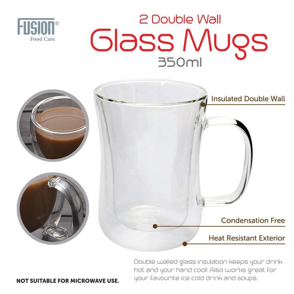 2 X Double Walled Glasses 350ML or 450ML for Latte Coffee Tea Glass Mugs Wall