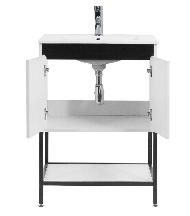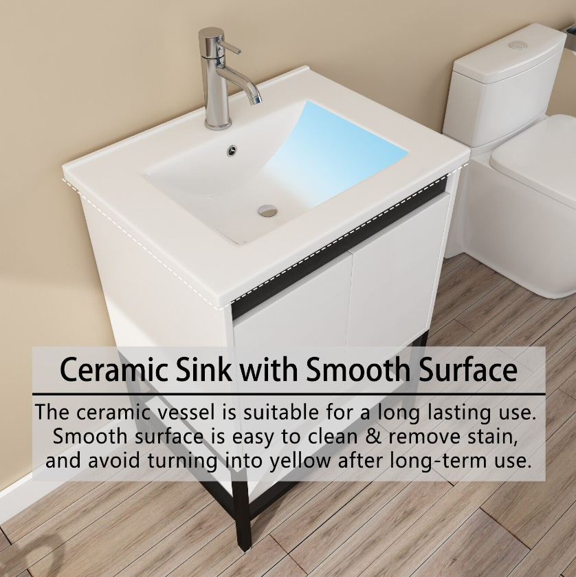 【Durable and Sturdy Structure】:Our bathroom vanities have constructed high-quality P2 grade PB board. The metal frame makes the bathroom furniture base more concise, and the surface is easy to clean and easy to take care of it.