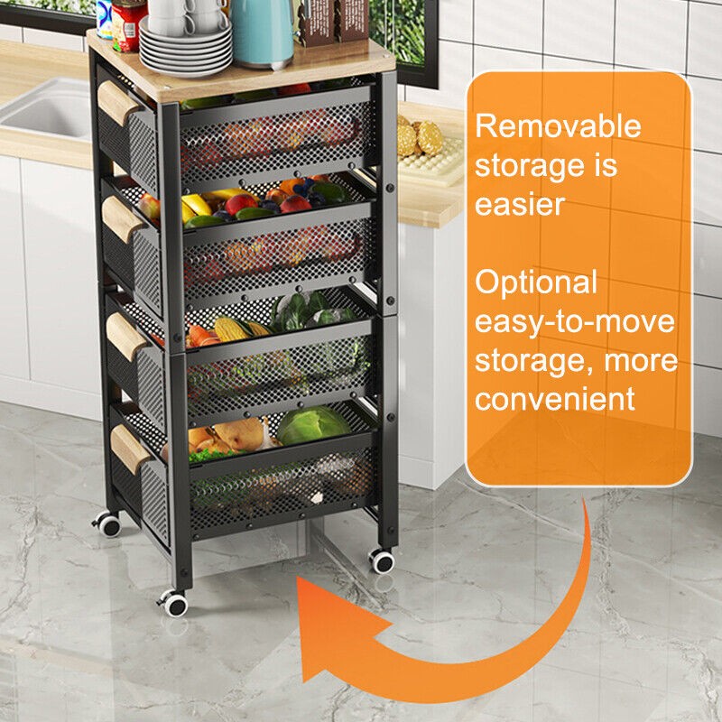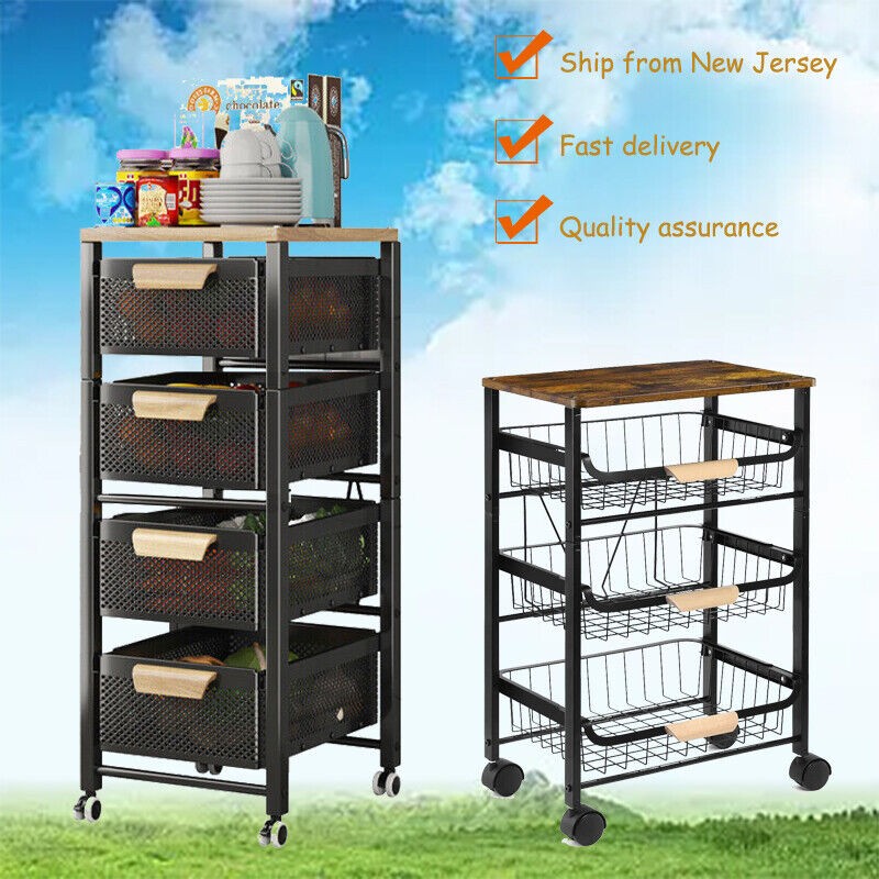 4/5 Tier Kitchen metal Storage Rolling Cart organizer with Drawers Wheels Shelf