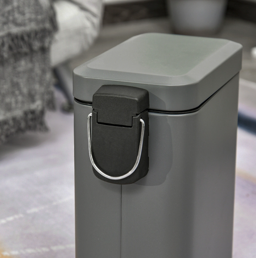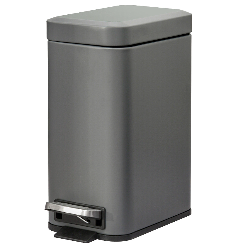 • Tough and durable steel body, with a powder coated for extra strength for everyday use • Stylish rectangular shape in a fresh grey to blend in beautifully with your home • Inner removable bucket with handle for easy and hygienic cleaning • Soft and quiet opening lid, operated by the large and easy-use foot pedal • Anti-slip bottom to keep the bin stable (can be knocked over when kicked or hit) • Small and compact size is perfect for even small areas in the bedroom, bathroom, office and beyond • Maximum capacity: five litres, lid maximum weight: 5kg • No assembly required, simply unpack and use!