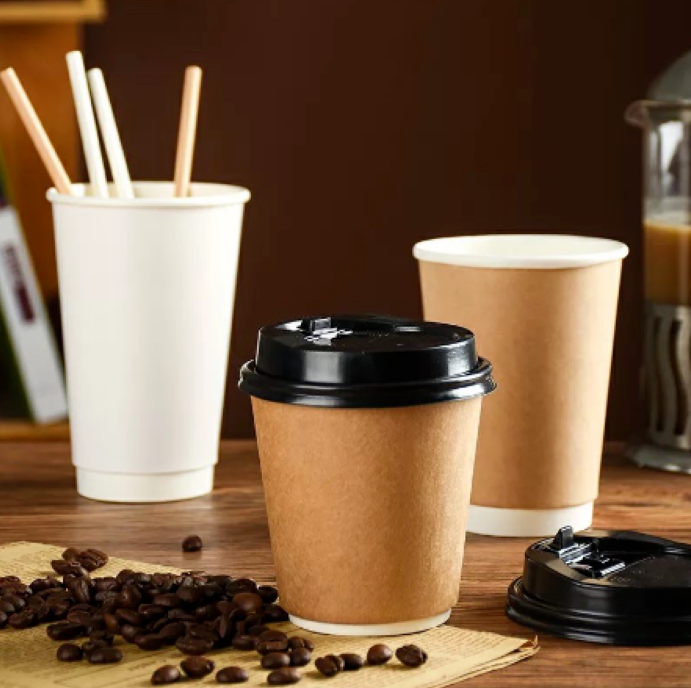 8oz/12oz/16oz Disposable Double Wall Black/Brown/White Paper Coffee Cups & Lids