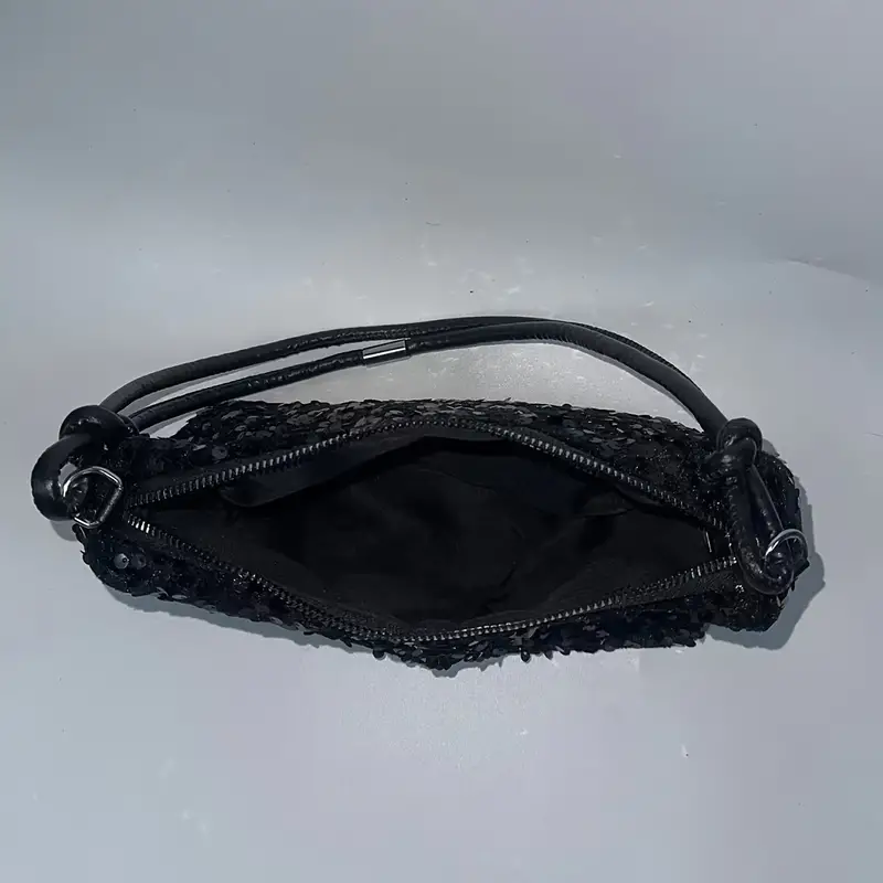 Carnaval Black Sequins Decor Shiny Shoulder Bag, Classic Niche Zipper Underarm Wallet For Women For Music Festival
