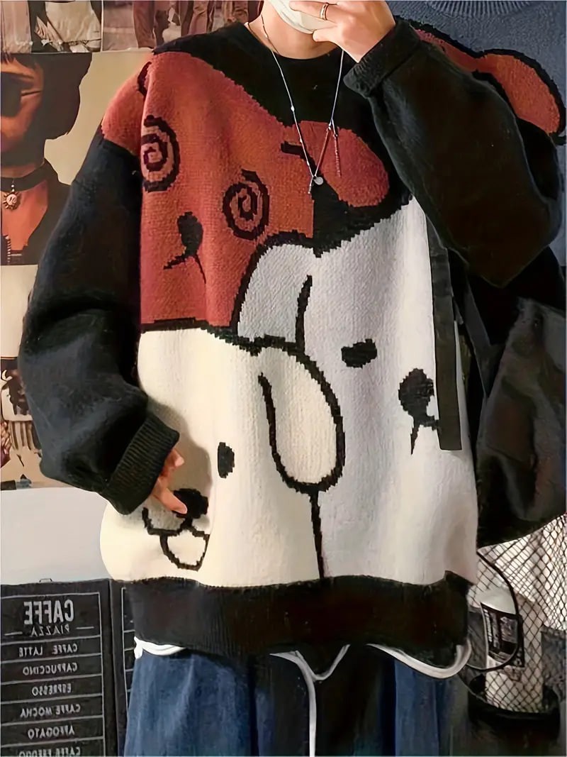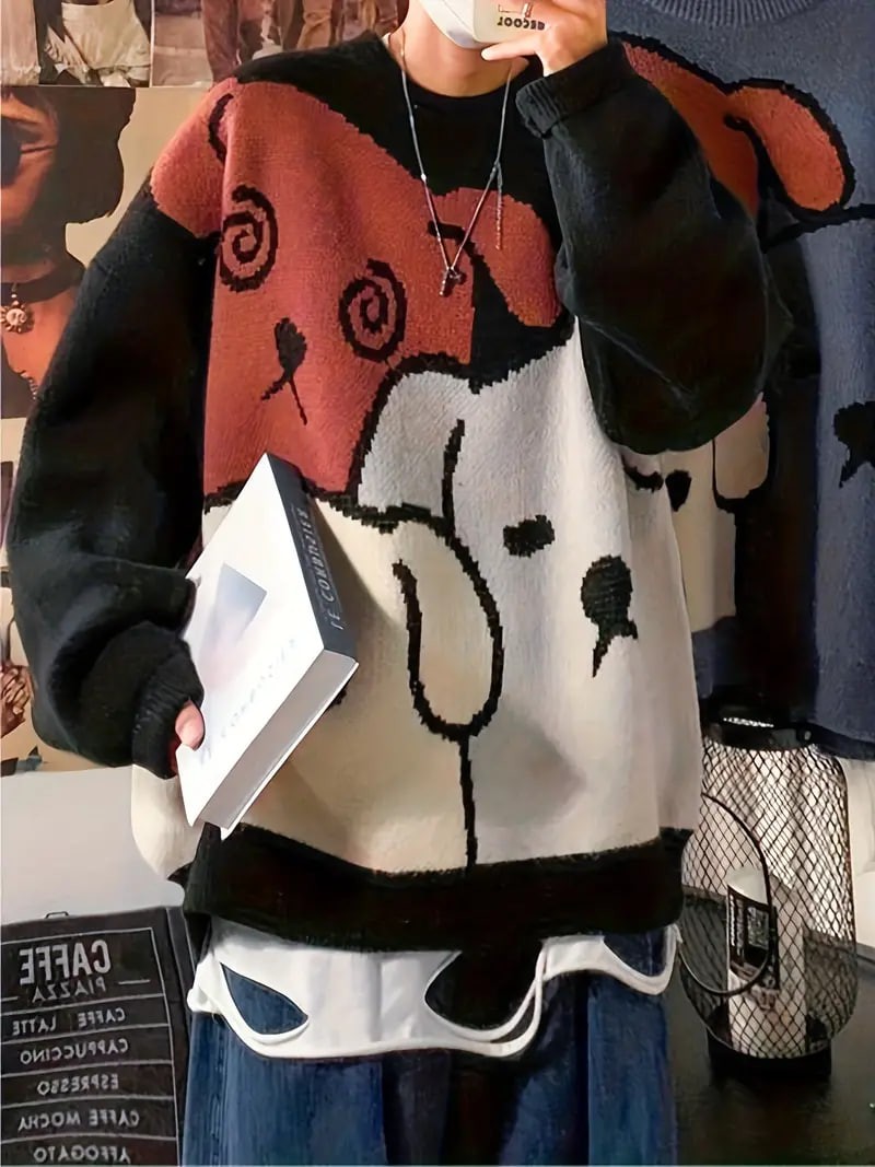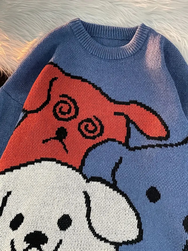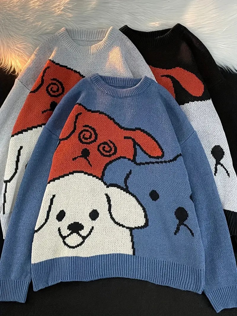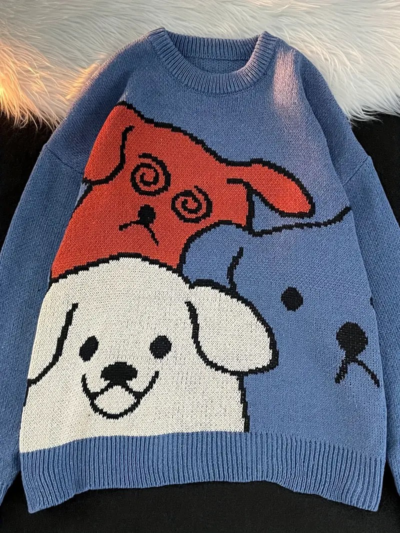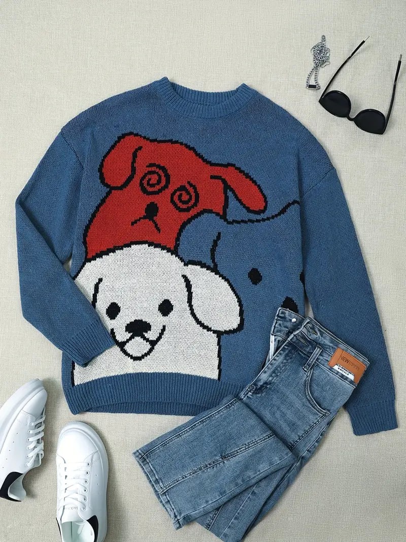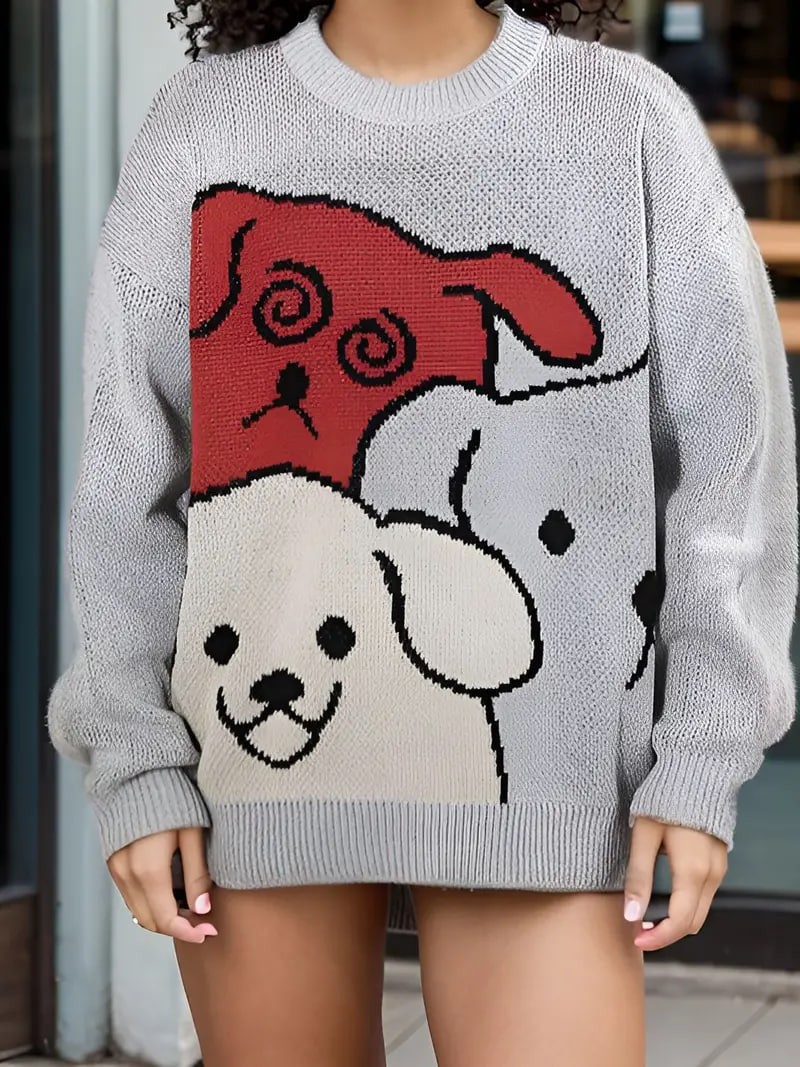 Cartoon Dog Casual Crew Neck Sports Sweater, Longs Sleeve Casual Pullover Sweater, Women's Tops