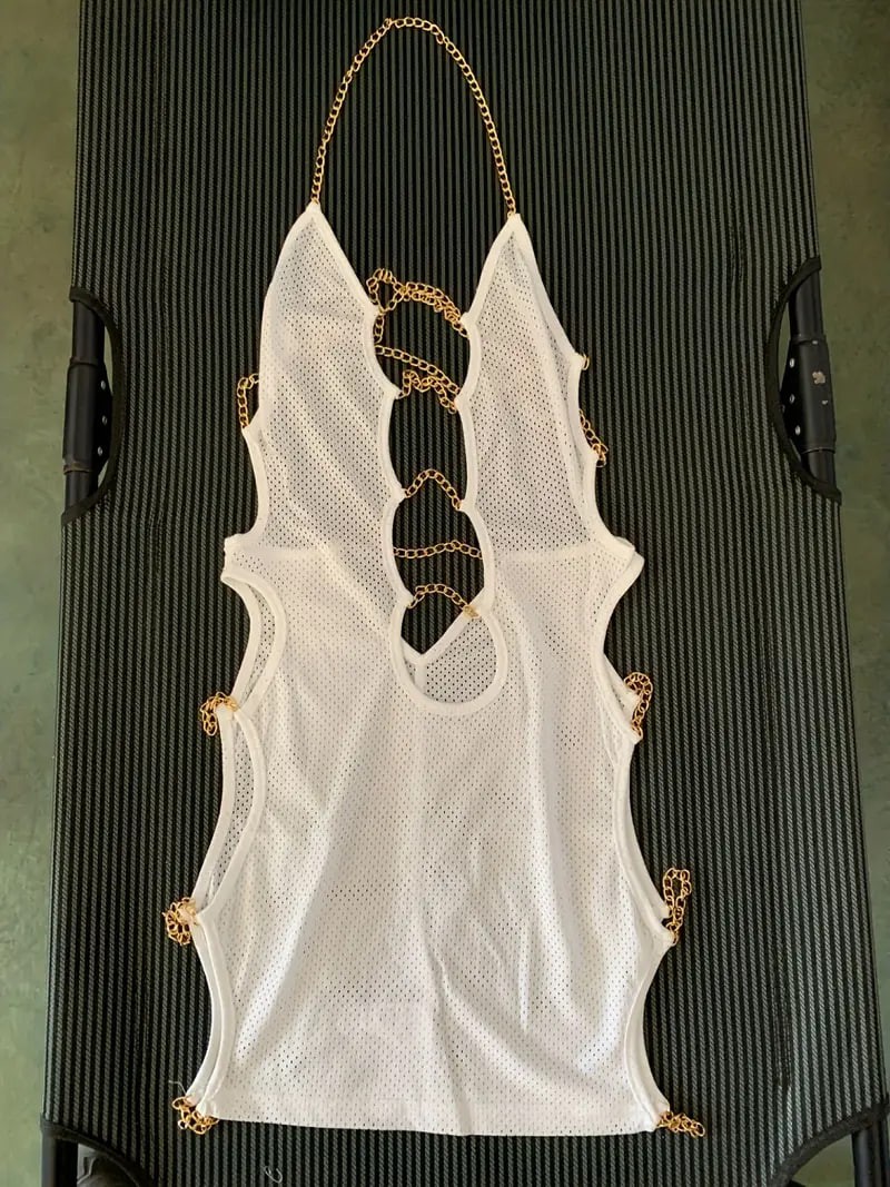 Chain Linked Cut Out Dress, Sexy Halter Neck Bodycon Club Dress, Women's Clothing