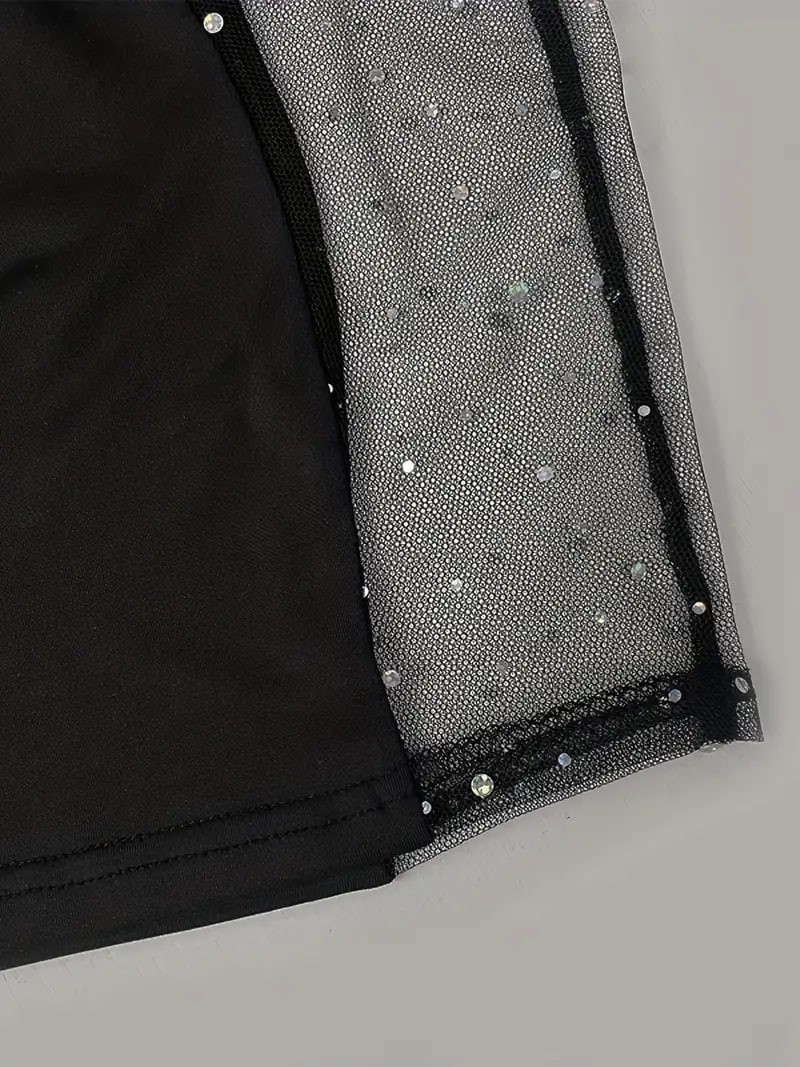 Contrast Mesh Halter Neck Dress, Sexy Bodycon Backless Club Dress, Women's Clothing