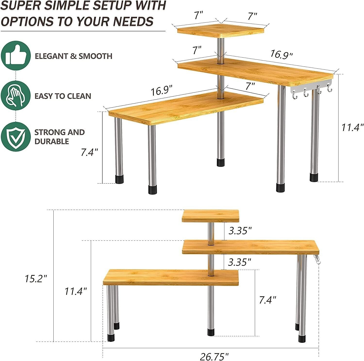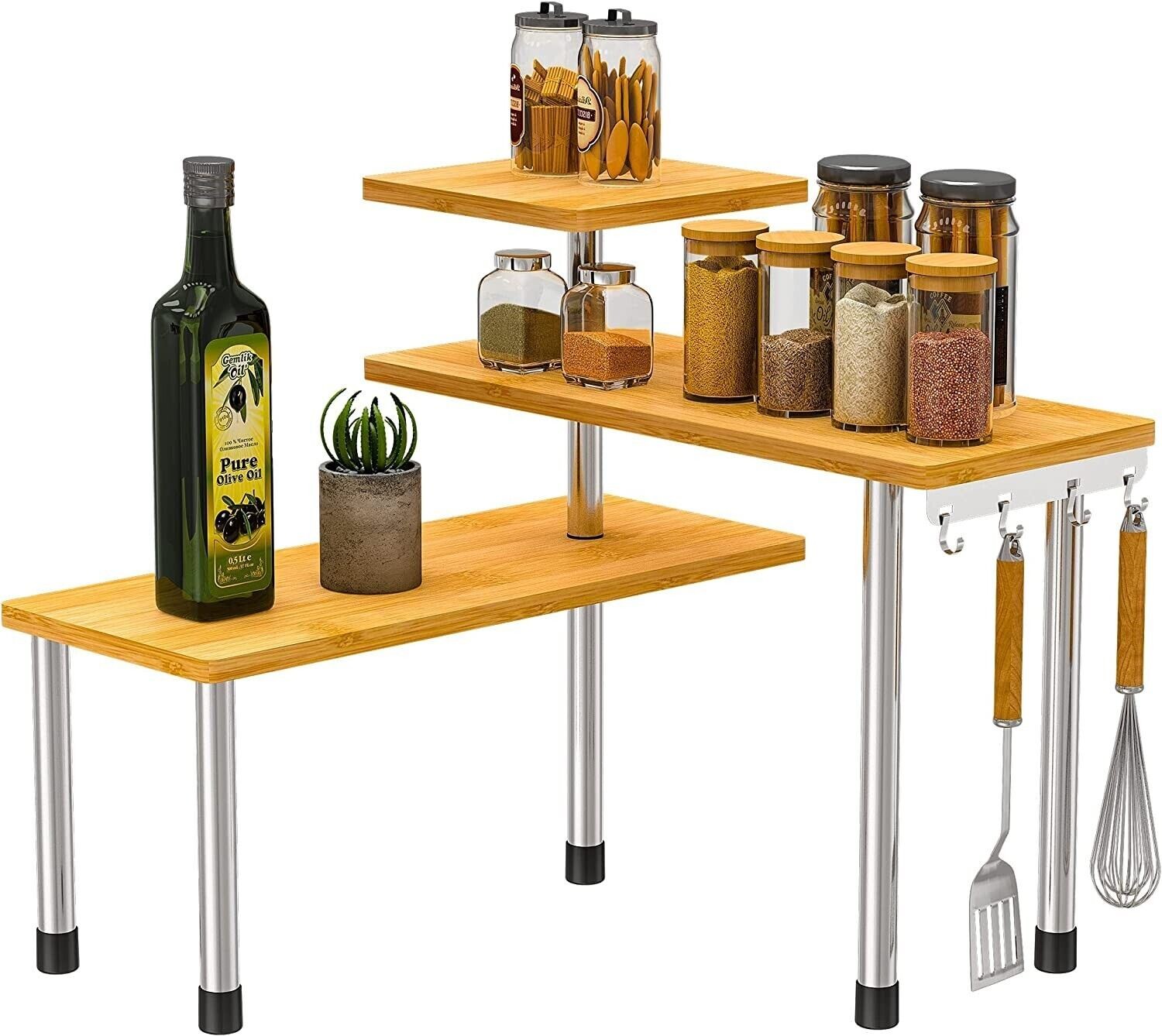 Kitchen Countertop Organizer Corner Shelf - 3 Tier Bathroom Storage Display Coun