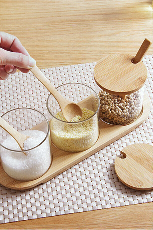 This spice Jars set are made from glass and bamboo.
