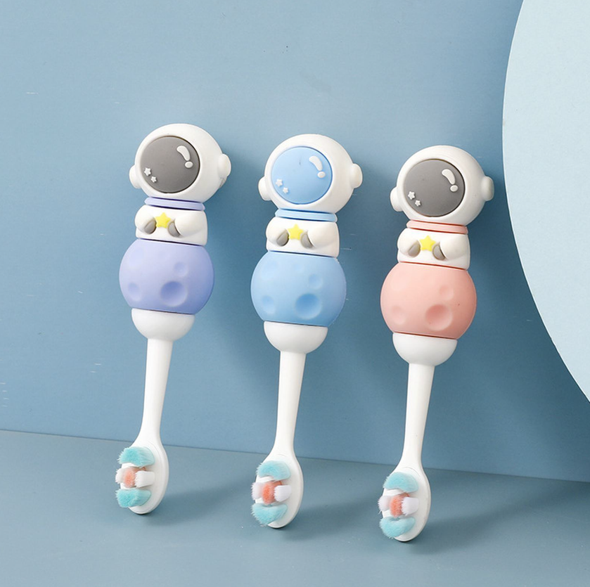 Manual Silicone Kids Toothbrush Soft Bristles Care Cleaning Brush Baby Toothbrush Children's cartoon astronaut toothbrush