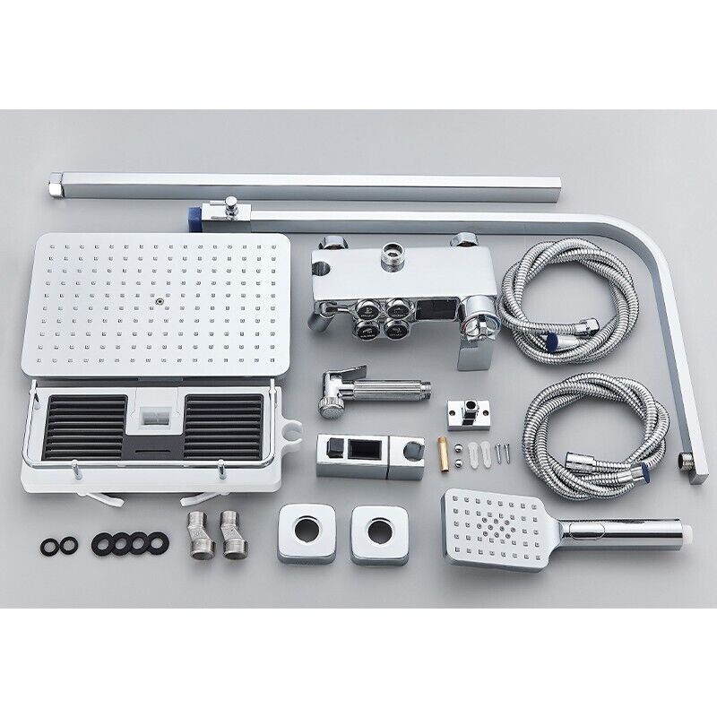 Modern Thermostatic Exposed Bathroom Shower Twin Head Bar Set Mixer Square Valve
