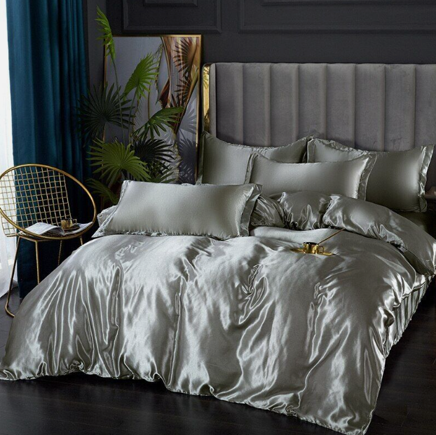 Soft Bedding Set Gray Reversible Duvet Cover Bed Sheet Pillow Silky Soft 4Pcs