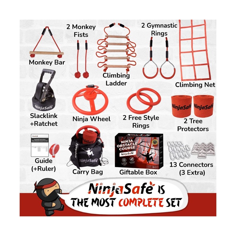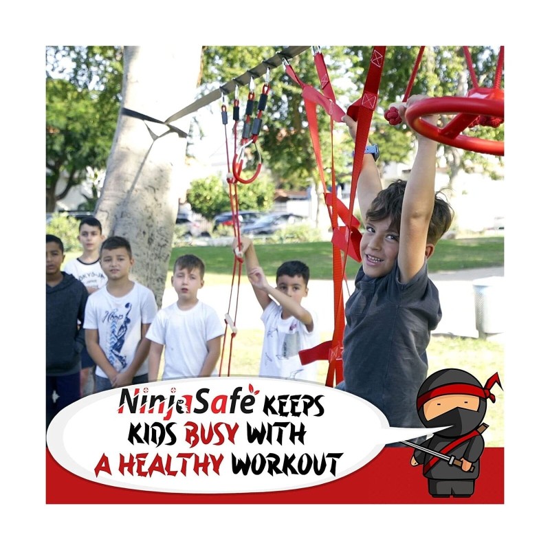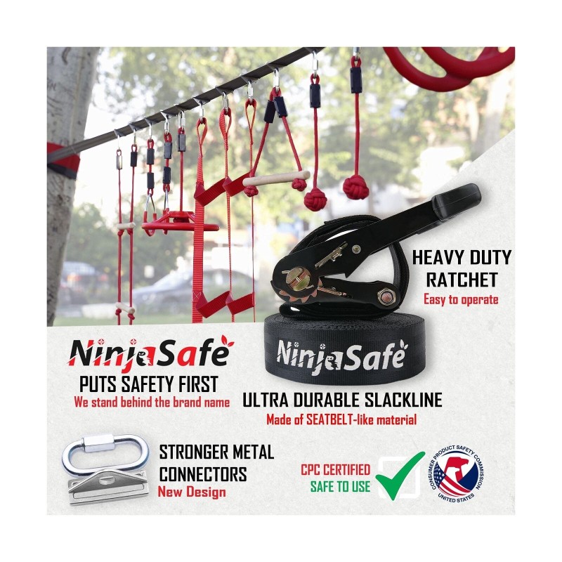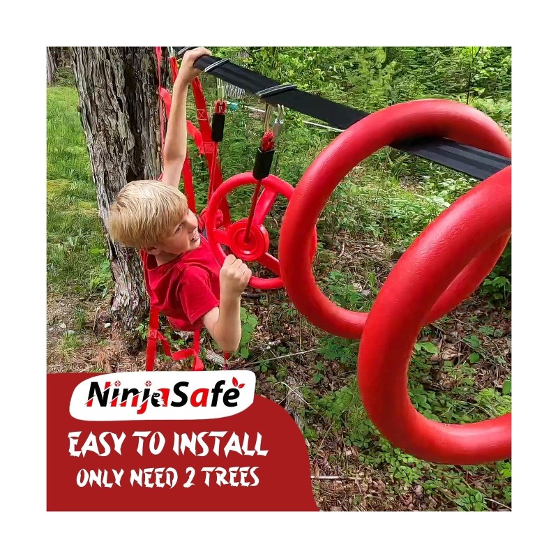 Ninja Obstacle Course for Kids Backyard - 10 Durable Obstacles and 50' Slackl...