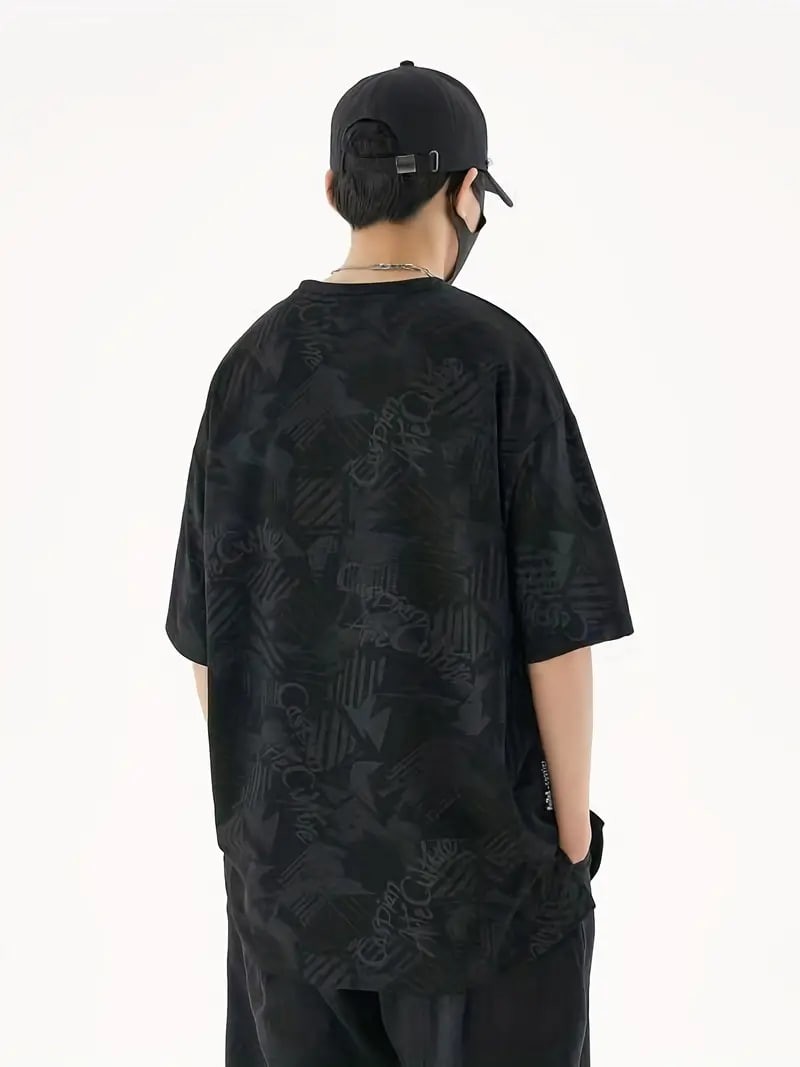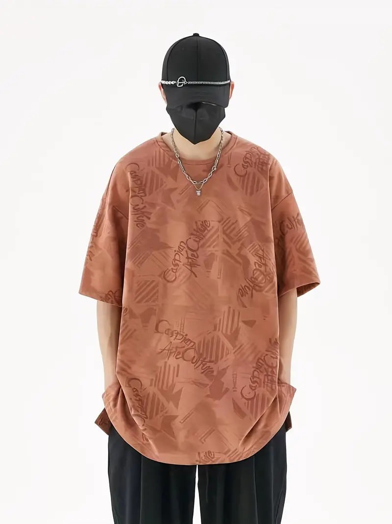Plus Size Men's Casual Streetwear Tops Solid Textured Fashion Loose Drop Shoulder T-shirts
