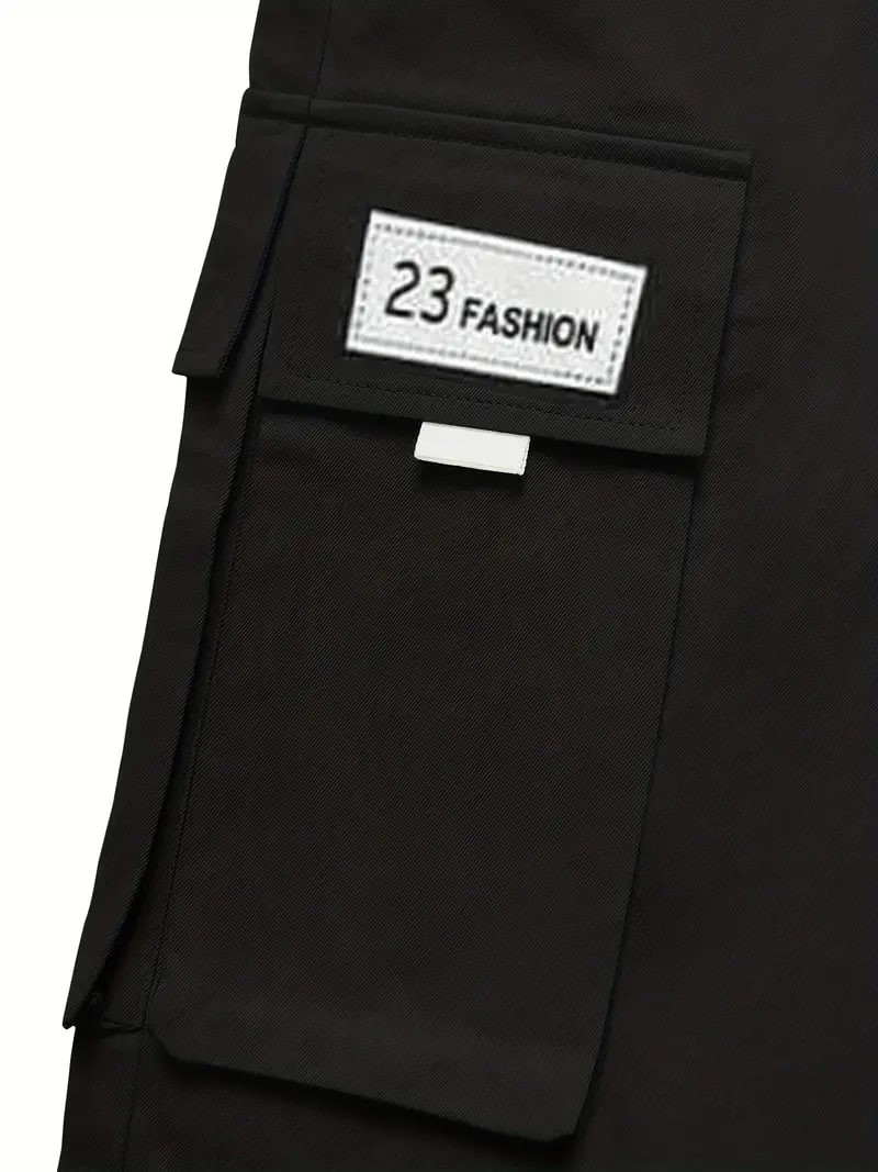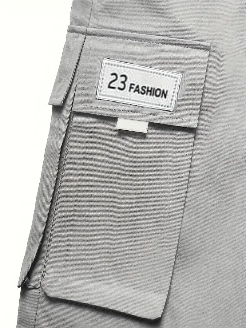 Plus Size Men's Drawstring Cargo Pants: Letters Print, Multi-Pocket Design, Perfect For Outdoor Activities