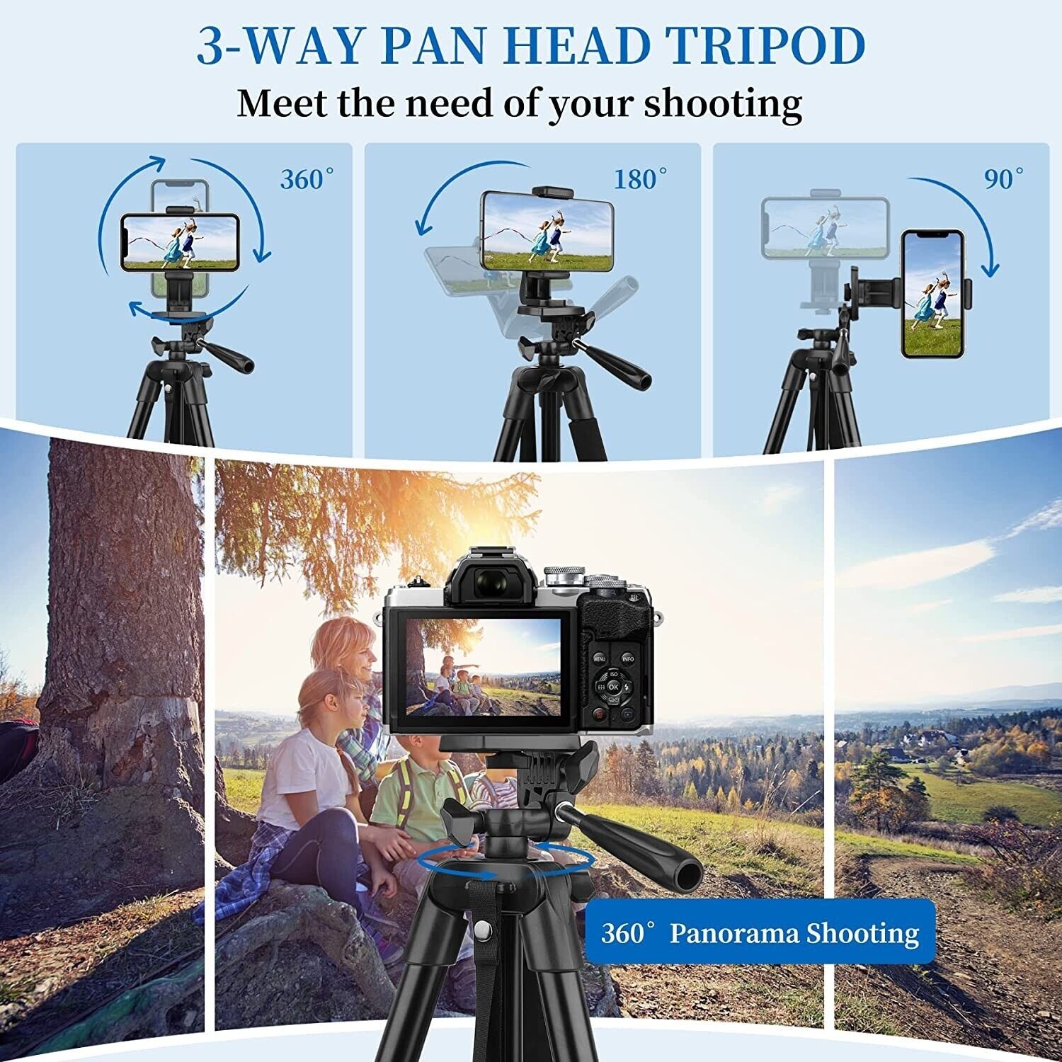Professional Camera Tripod Stand + Phone Holder For Smartphone Samsung iPhone