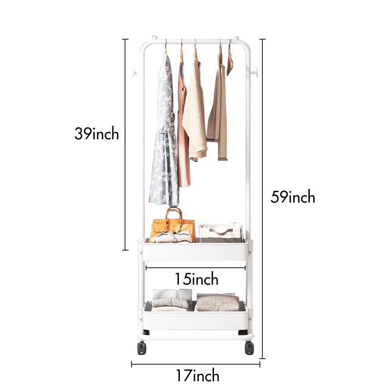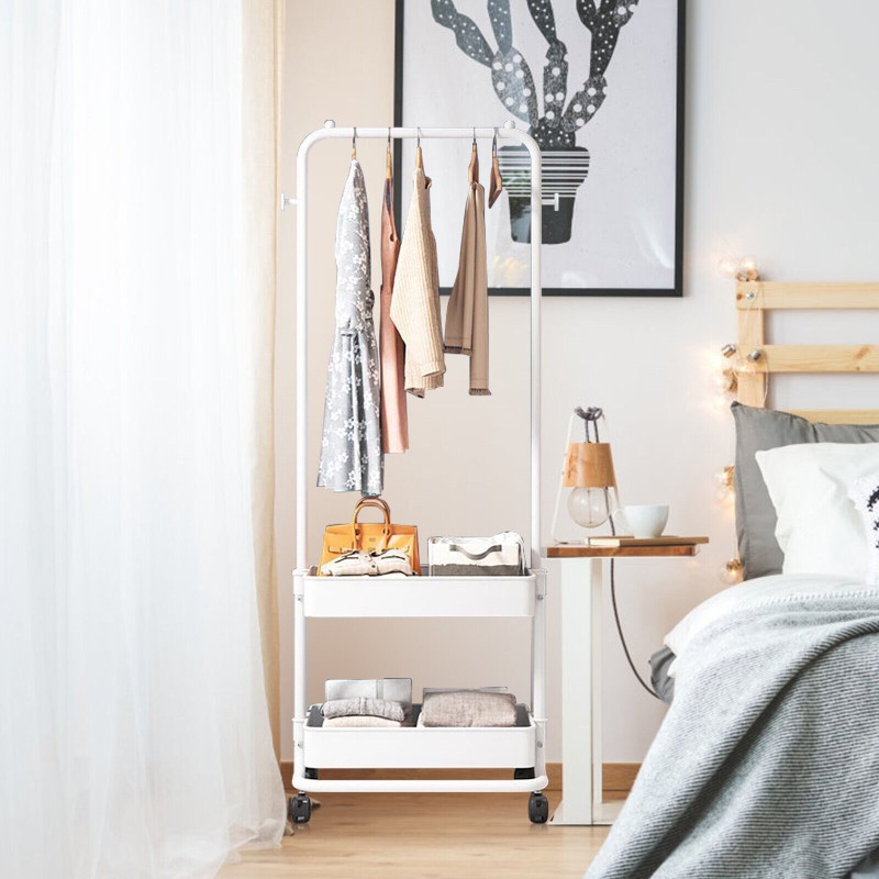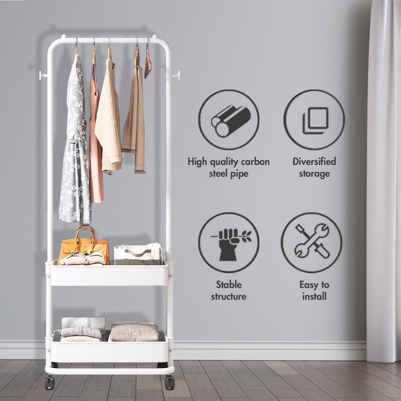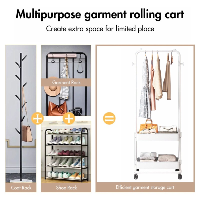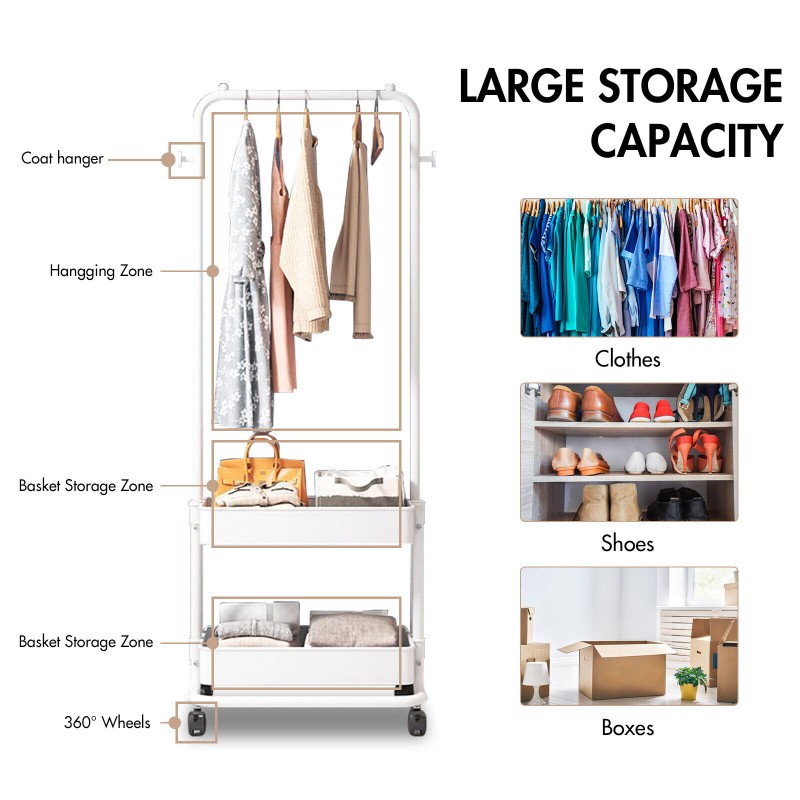 Stackable, w/Coat Hooks, Portable, Rolling, Hanging, With Baske, Clothes Hanging Bar