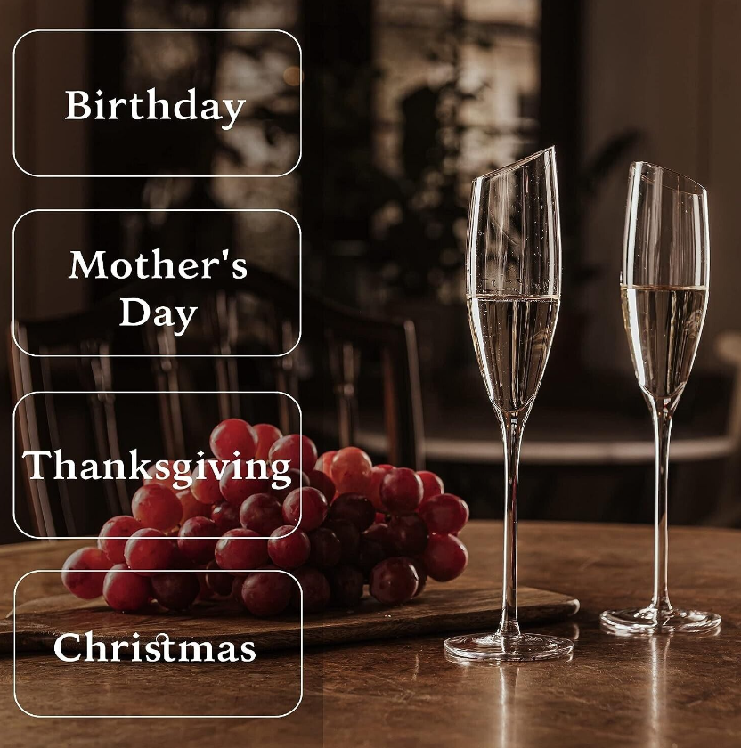 • Perfect gift for wine lovers - impress your loved ones with modern champagne flute crystal glass set and add a bottle of good sparkling wine. Perfect choice for different occasions.