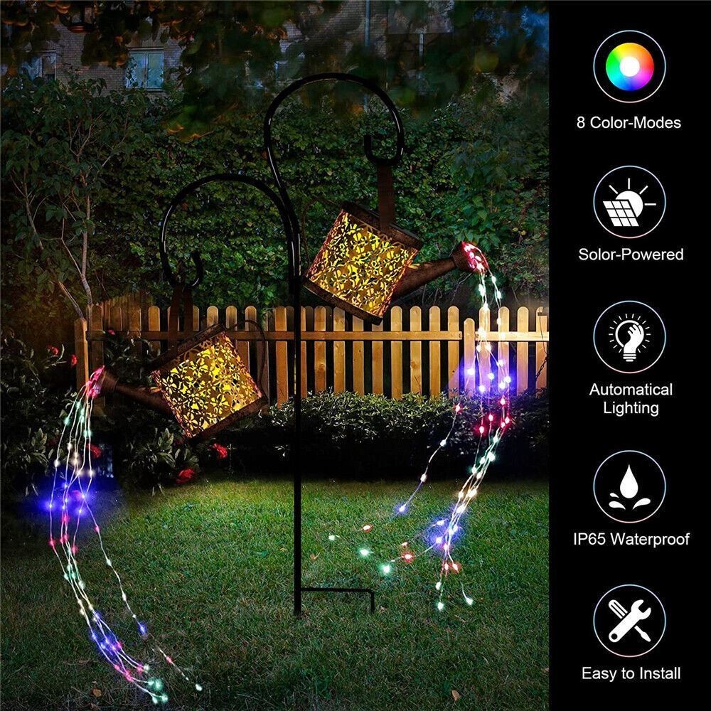 Solar LED Watering Can Lights Outdoor Waterproof Decorative Kettle Garden Yard Art Lamp Hollow Water Sprinkle Projection Landscape Lamps for Street Courtyard