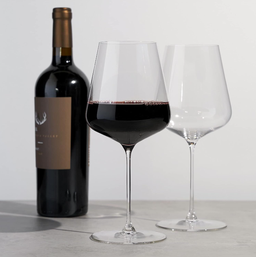 • EXQUISITE WINE GLASS SET – This set of Bordeaux wine glasses will take your vino to a new level. Designed with an elegant stem and generous bowl, this crystal stemware holds 26 oz. and is ideal for serving complex red wines.