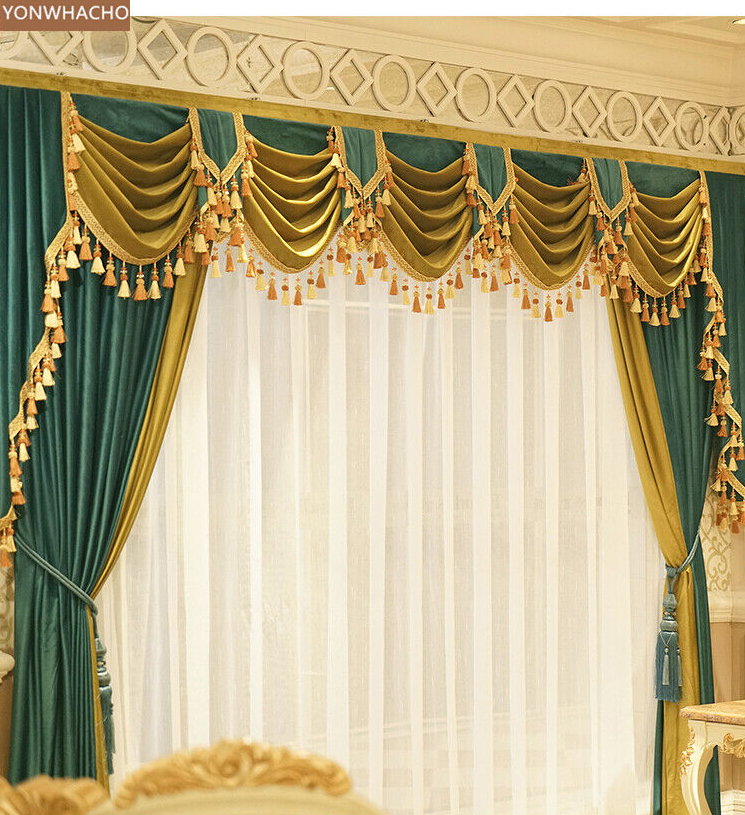 Stunning European luxury velvet green cloth blackout curtain valance drape B769*
