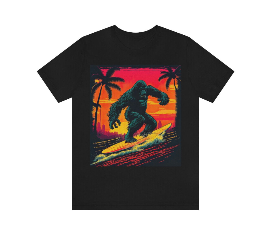 SURFING GORILLA Unisex Short Sleeve SURF Tee T-Shirt Beach Surfer Retro Vintage
