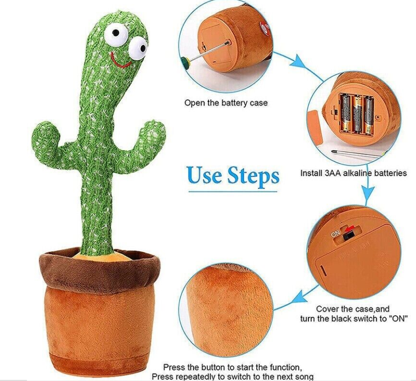 Talking Toy Dancing Cactus Doll Speak Talk Sound Record Repeat Kawaii 120 songs