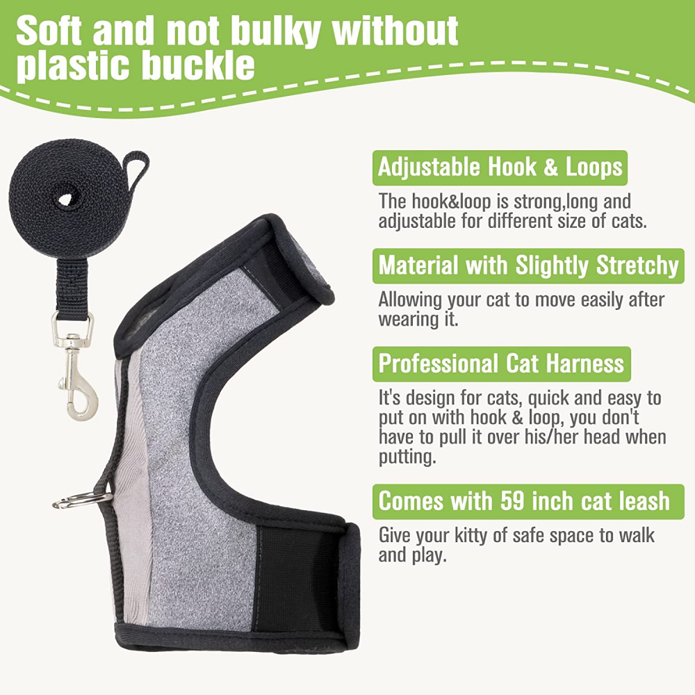 VKPETFR Cat Harness and Leash Set, Escape Proof Adjustable Kitten Medium