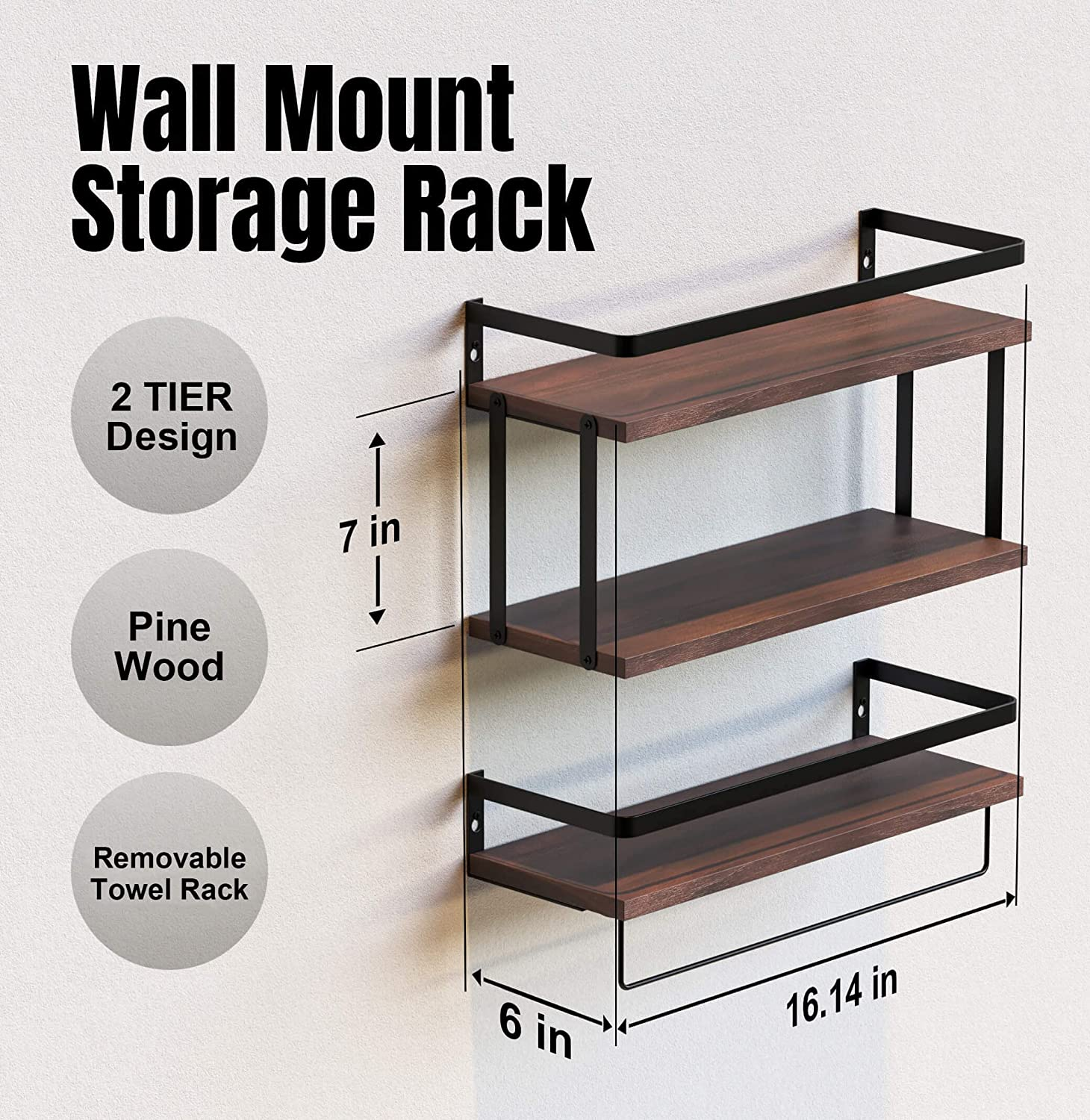 Mounting Accessories, Wood board, Metal bracket, Removable towel