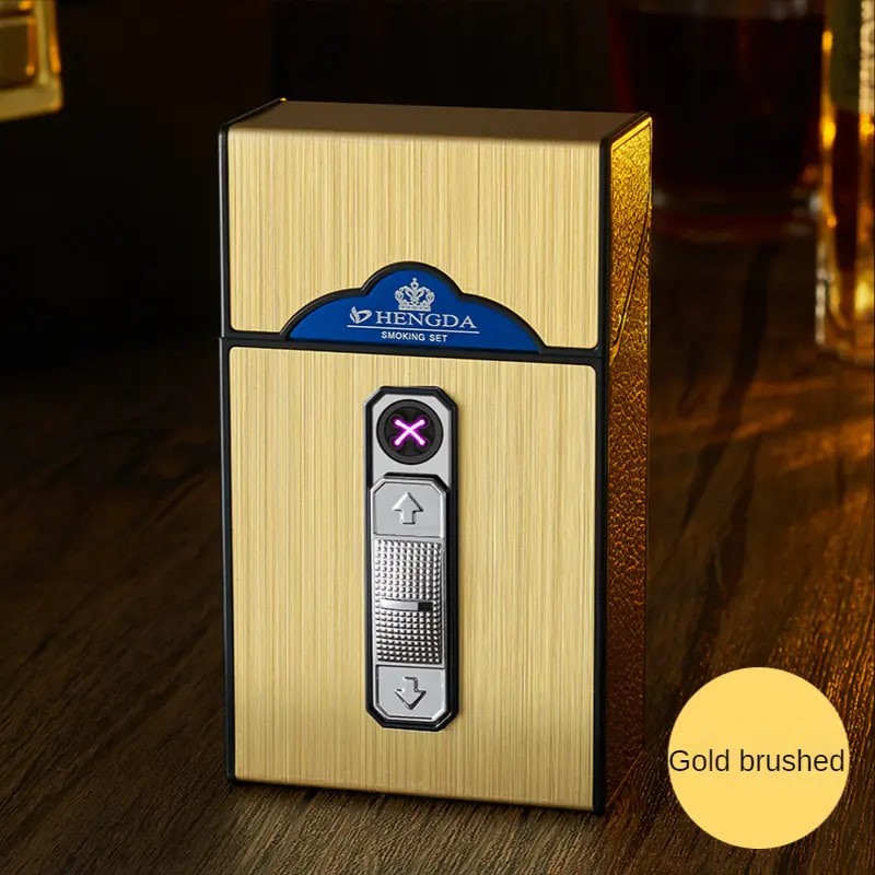 Waterproof Metal Cigarette Case with Double Arc Electronic Lighter and USB Charging