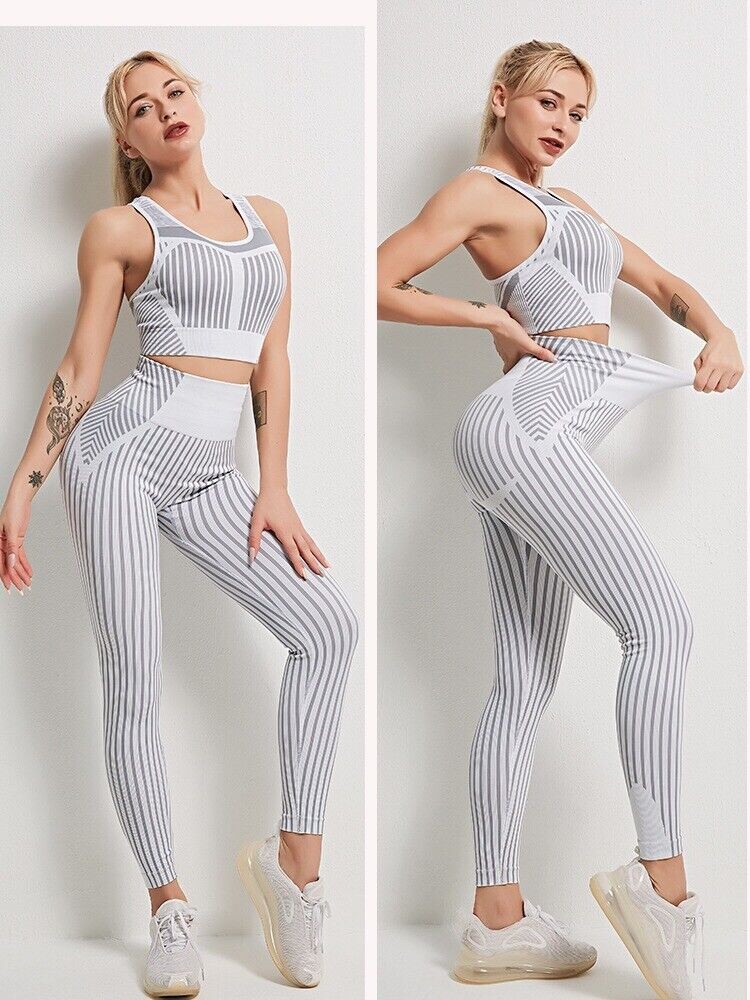 Women Workout 2 Piece Outfits Seamless High Waist Yoga Legging Sport Bra Gym Set