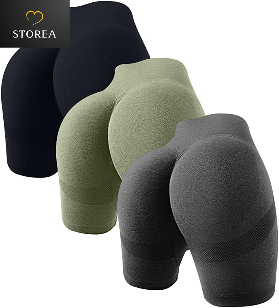Women'S 3 Piece Butt Lifting Yoga Shorts Workout High Waist Tummy Control