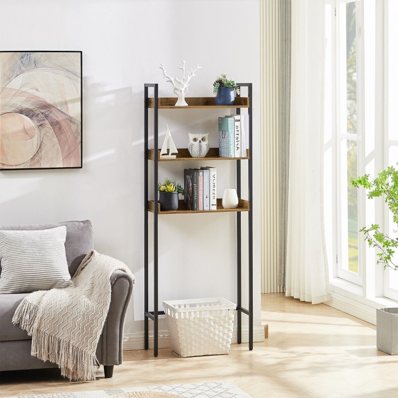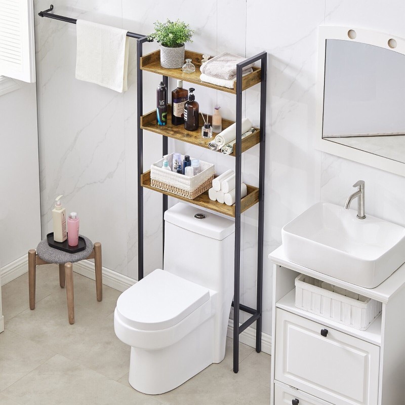 Wooden Over the Toilet Bathroom Storage 3-Tier Shelf Rack Metal Frame Organizer